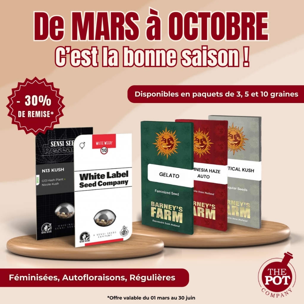 The Pot Company Nantes propose l’une des plus belles sélections de graines de collection à Nantes, avec les deux breeders les plus respectés du marché en stock permanent : Barney’s Farm et Sensi Seeds.
